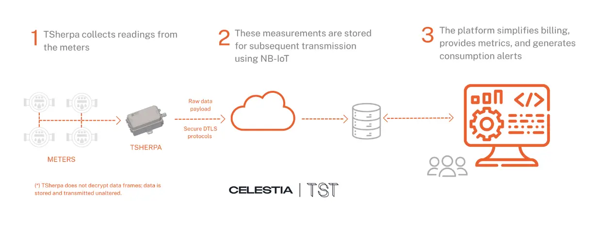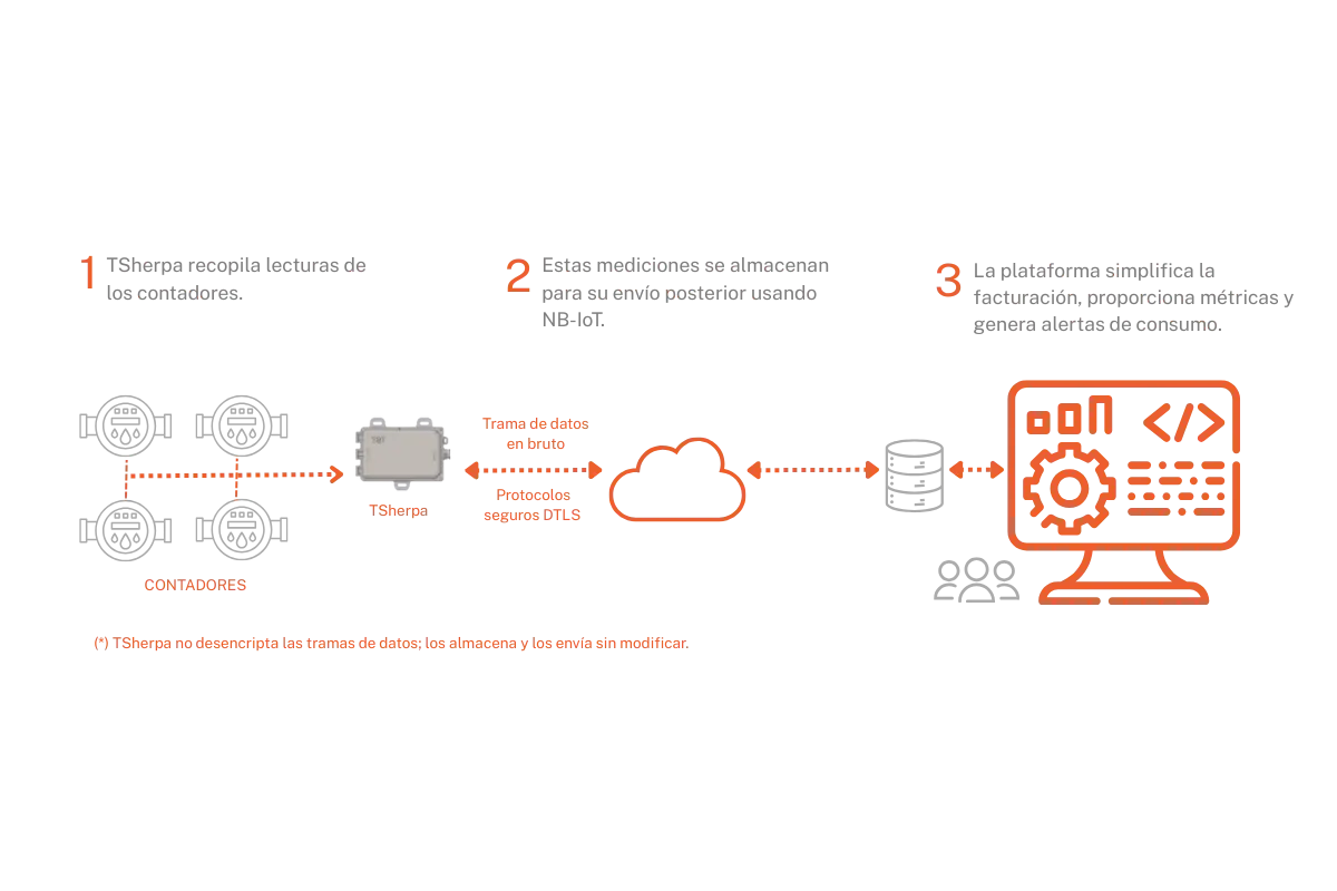 Una solución IoT integral para telelectura y gestión avanzada, sin cambiar tus contadores. Compatible con UNE 82326, Wireless M-BUS (OMS) y RS-485.